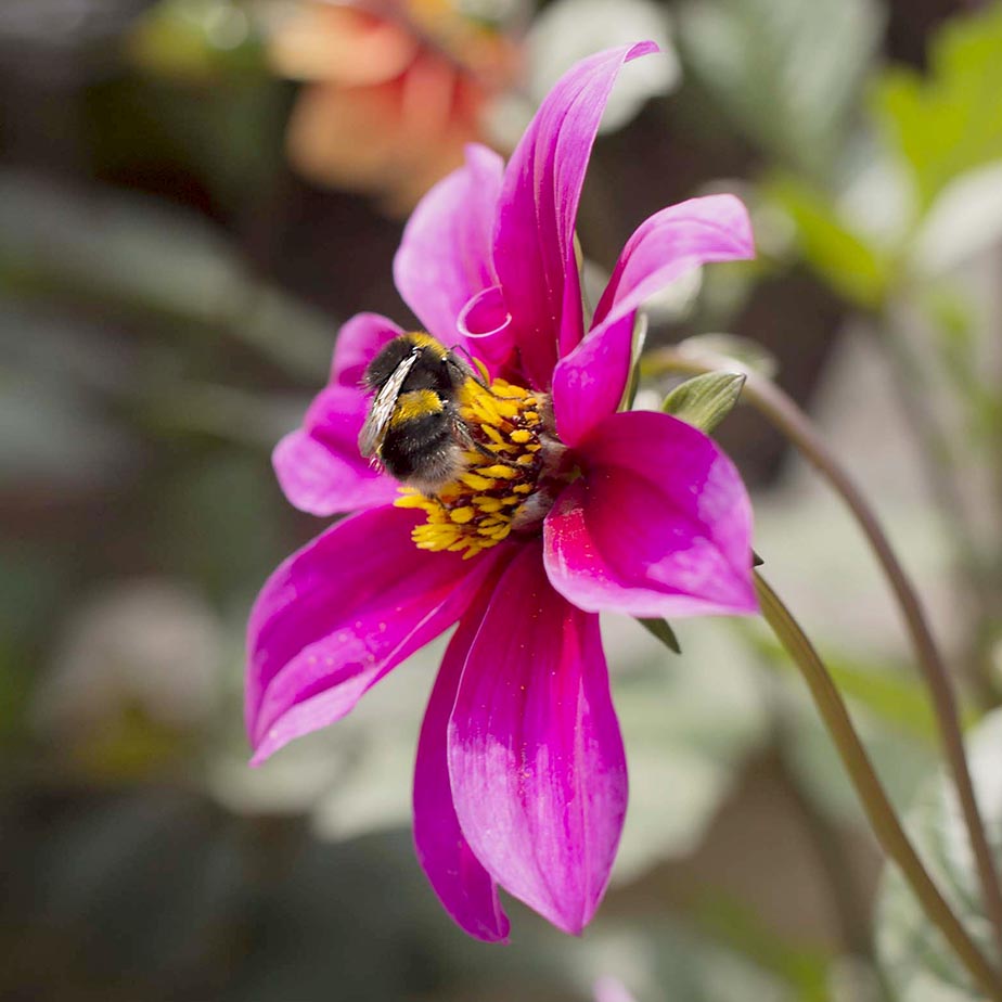 Write down the date, the chosen colour form and the number of open flower heads on the three plants. Spend five minutes watching the chosen dahlia plants.
